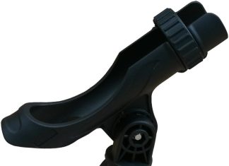 Brocraft glue-on rod holder for RIBs & inflatables — low-profile, fiberglass-reinforced, 360° adjustable. Glue not included; surface prep required. Try safe glue