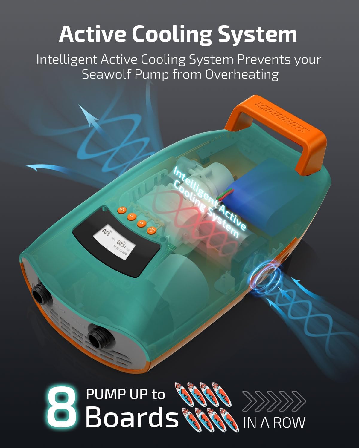 I like the Swonder Seawolf. It strikes a strong balance between performance and portability. The 9,000mAh battery gives genuine off-grid capability, the dual-cylinder dual-stage design delivers faster inflations, and the active cooling system makes repeated use practical on busy days. Accuracy and auto-off work well, and the deflation function is a nice time-saver for packing up.